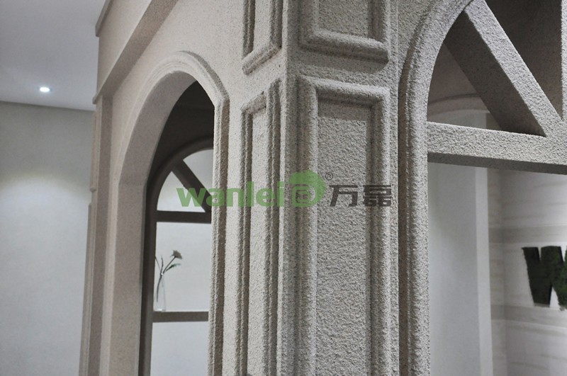 采用萬(wàn)磊在中國(guó)獨(dú)創(chuàng)的無(wú)阻力噴涂配方,所能在選用石粒的時(shí)候集中采用粗一級(jí)的砂:在噴涂過(guò)程耗量極低,表面均勻度可以達(dá)到99.8%以上,所有的粗砂都能集中反應(yīng)在墻面上,更能突顯3D石材的效果。